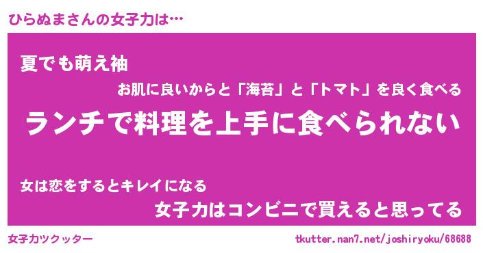 | ヘコむあだ名 | 『ひらふぇ~』『なまこ酢』 |