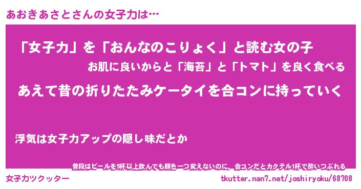 | ヘコむあだ名 | 『あおにゅー』『つくし』『あお太郎』 |