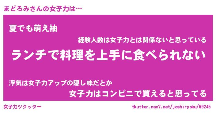 | ヘコむあだ名 | 『まどっふぃ~』『なまこ酢』 |