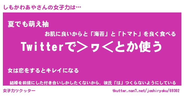 | 肩書あだ名 | 『しもかわあや御曹司』 |