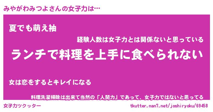| 肩書あだ名 | 『みやがわみつよ御曹司』 |