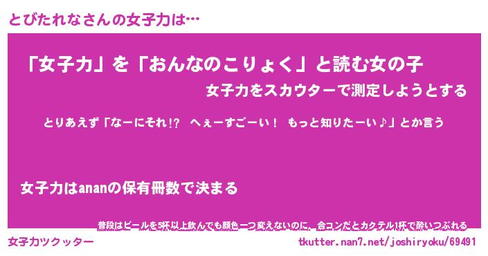 | ヘコむあだ名 | 『とびにー』『つくし』『とび太郎』 |
