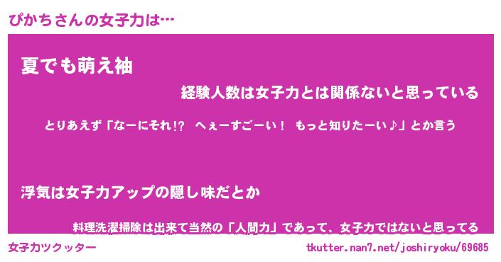 | ファンタジー風あだ名 | 『ピカフェル』『エターナルピカチー』 |
