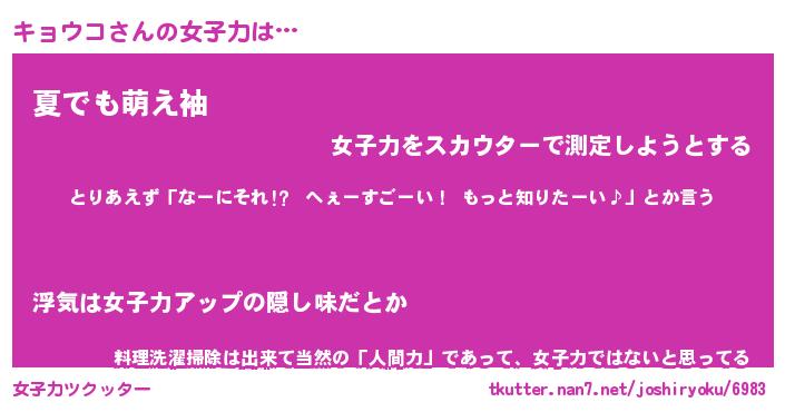 | ヒーロー風カッコイイあだ名 | 『スーパーキョウコ』『炎刃騎士キョ』 |