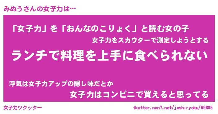 | ファンタジー風あだ名 | 『ミヌフェル』『エターナルミヌウー』 |