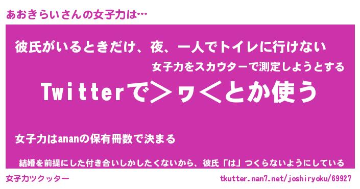 | ファンタジー風あだ名 | 『アオフェル』『エターナルアオキライー』 |