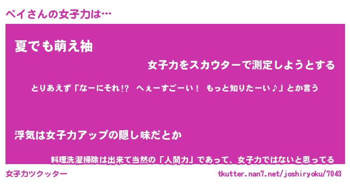 | ヘコむあだ名 | 『ペイふぇ~』『なまこ酢』 |