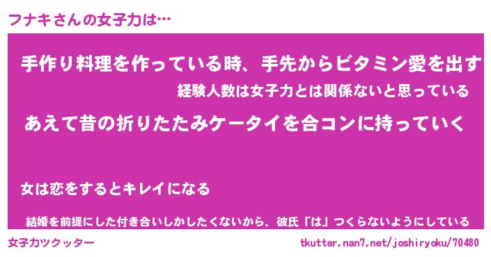 | ファンタジー風あだ名 | 『フナフェル』『エターナルフナキー』 |
