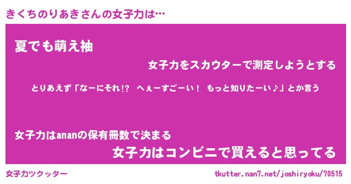 | ヘコむあだ名 | 『きくにゅー』『酢こんぶ』 |