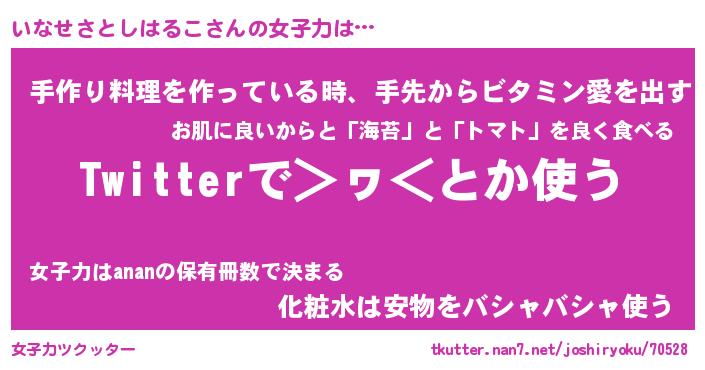 | ヘコむあだ名 | 『いなっふぃ~』『つくし』 |