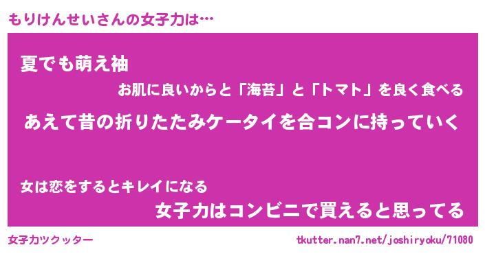 | ヘコむあだ名 | 『もりにゅー』『なまこ酢』 |