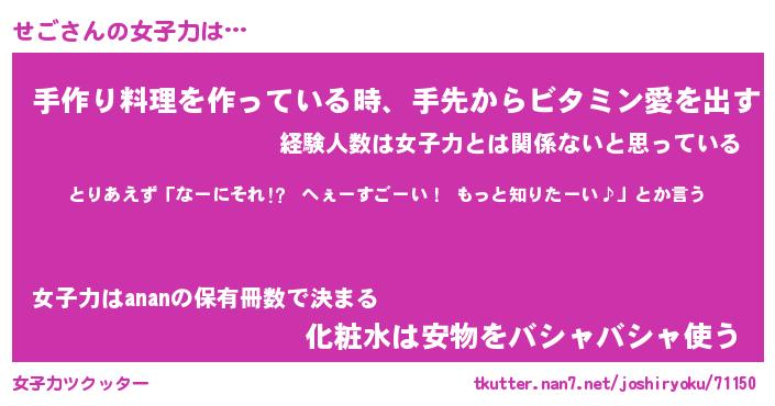 | ヘコむあだ名 | 『せごっふぃ~』『つくし』 |