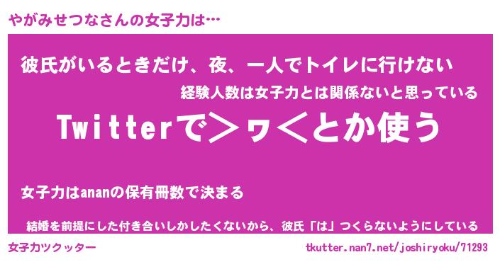 | ヒーロー風カッコイイあだ名 | 『スーパーヤガミセツナ』『暗黒騎士ヤガ』 |