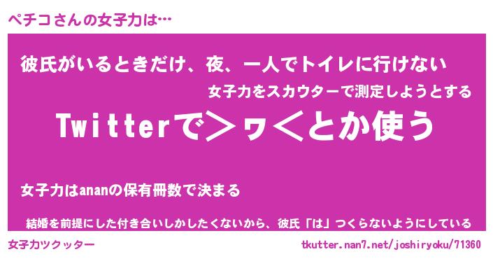| ヘコむあだ名 | 『ペチにゅー』『豆乳』『ペチぷりん』 |