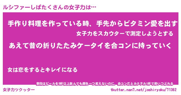 | ヘコむあだ名 | 『ルシふぇ~』『つくし』『ルシ太郎』 |