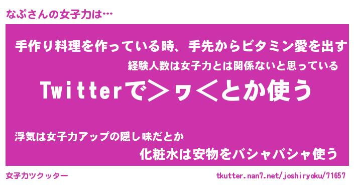 | ヘコむあだ名 | 『なぷもー』『つくし』『なぷぷりん』 |