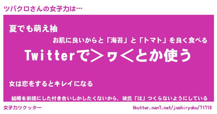 | ファンタジー風あだ名 | 『ツバフェル』『エターナルツバクロー』 |