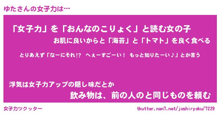 | ヘコむあだ名 | 『ゆたにー』『なまこ酢』『ゆたを』 |