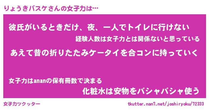 | 男性向けラノベタイトル風あだ名 | 『りょうきバスケの憂鬱』 |