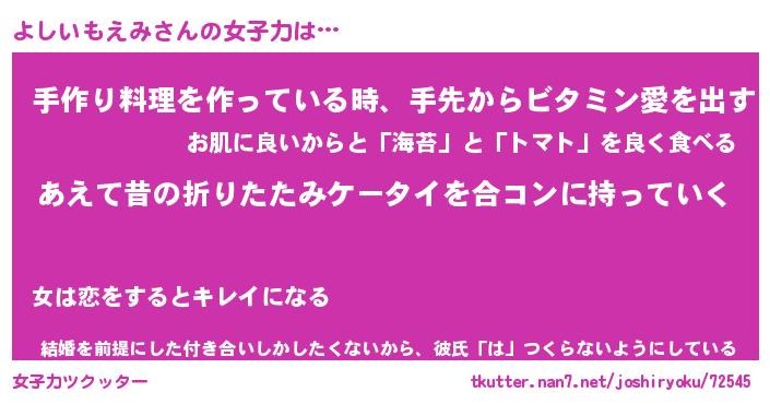 | 恥ずかしいあだ名 | 『プリティーよしいもえみ』『よしっちょ』 |