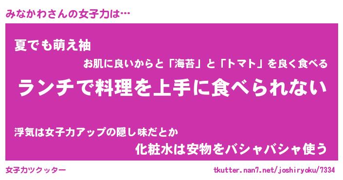 | 意味不明あだ名 | 『ペロリンみなかわ』『永久保存みなかわ』 |