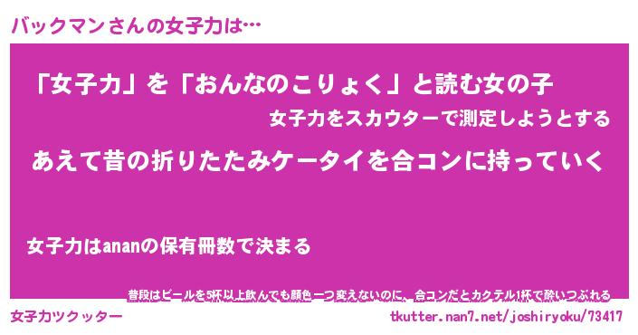 | 恥ずかしいあだ名 | 『プリティーバックマン』『バッっちょ』 |