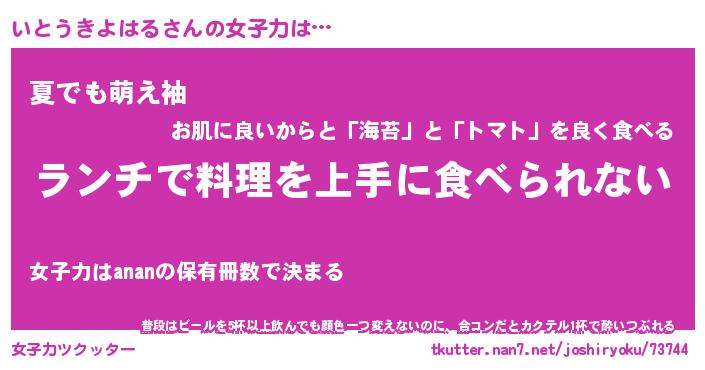 | 恥ずかしいあだ名 | 『プリティーいとうきよはる』『いとちん』 |