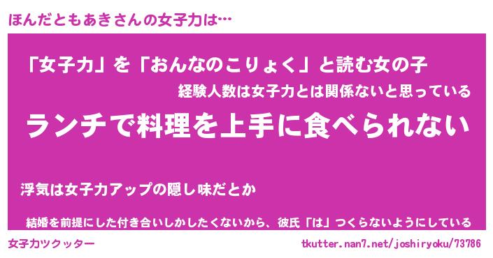 | 恥ずかしいあだ名 | 『プリティーほんだともあき』『ほんちん』 |
