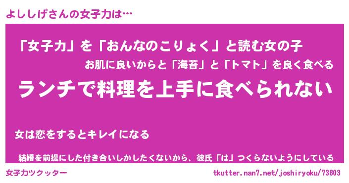 | ファンタジー風あだ名 | 『ヨシフェル』『エターナルヨシシゲー』 |