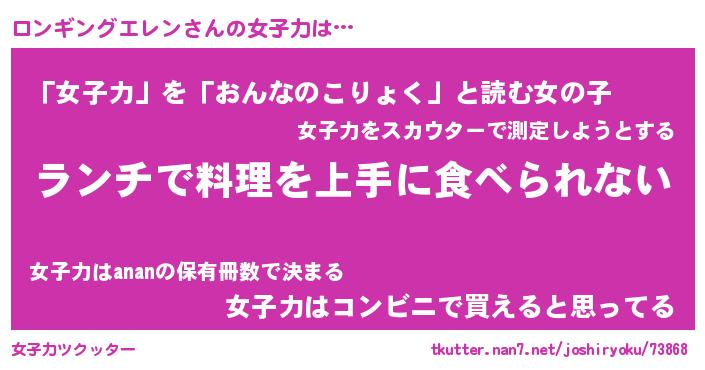 | 男性向けラノベタイトル風あだ名 | 『ロンギングエレンアートオンライン』 |
