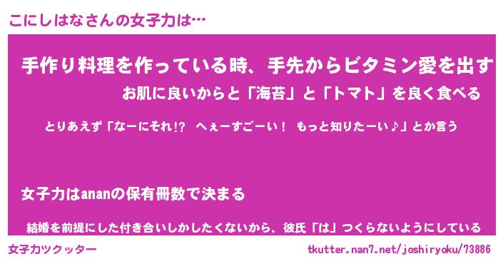 | ファンタジー風あだ名 | 『コニフェル』『エターナルコニシハナー』 |