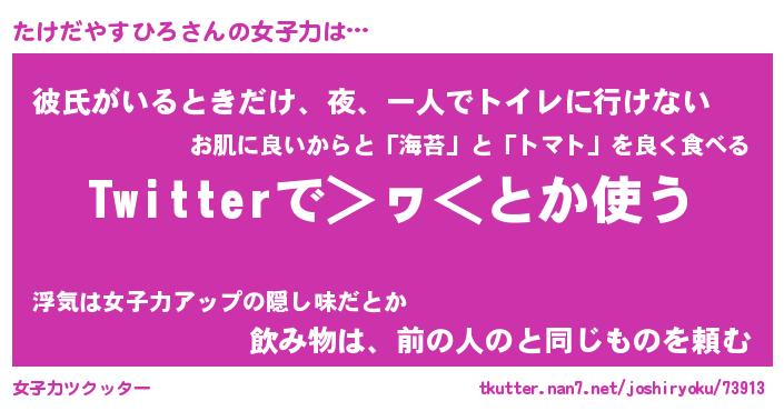 | 恥ずかしいあだ名 | 『プリティーたけだやすひろ』『たけちん』 |