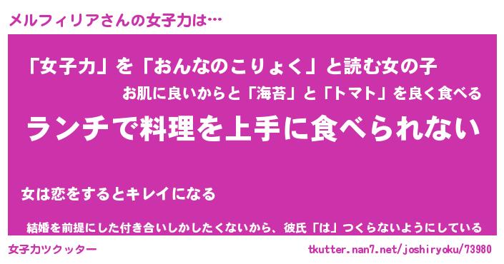 | 恥ずかしいあだ名 | 『プリティーメルフィリア』『メルっちょ』 |