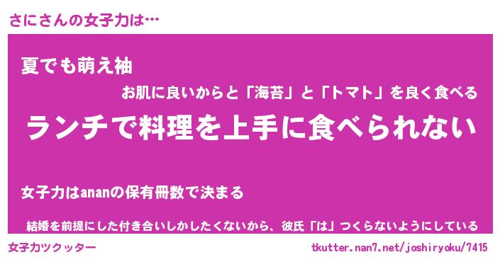 | ヘコむあだ名 | 『さににゅー』『なまこ酢』『さにお』 |