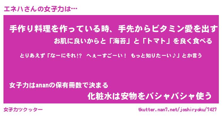 | ヘコむあだ名 | 『エネふぇ~』『つくし』『エネお』 |