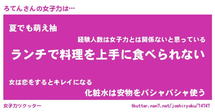 | 恥ずかしいあだ名 | 『プリティーろてん』『ろてっちょ』 |