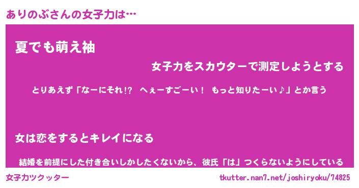 | ファンタジー風あだ名 | 『アリフェル』『エターナルアリノブー』 |