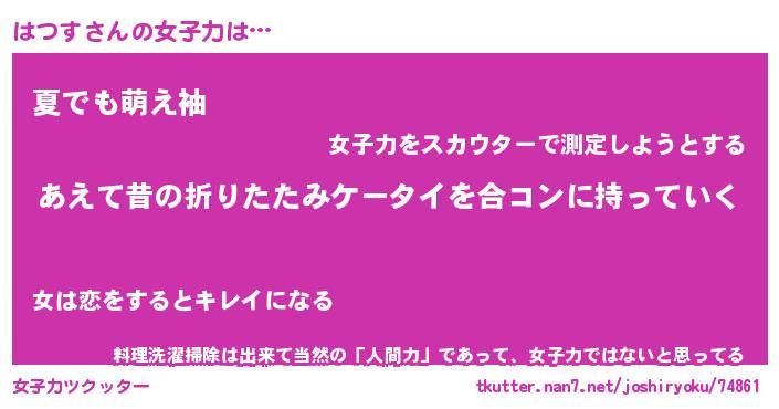 | ファンタジー風あだ名 | 『ハツフェル』『エターナルハツスー』 |