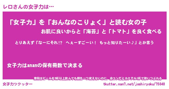 | ヘコむあだ名 | 『レロっふぃ~』『つくし』 |