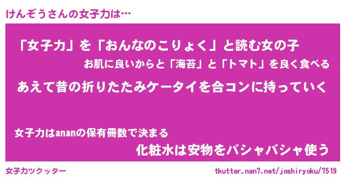 | ファンタジー風あだ名 | 『ケンフェル』『エターナルケンゾウー』 |
