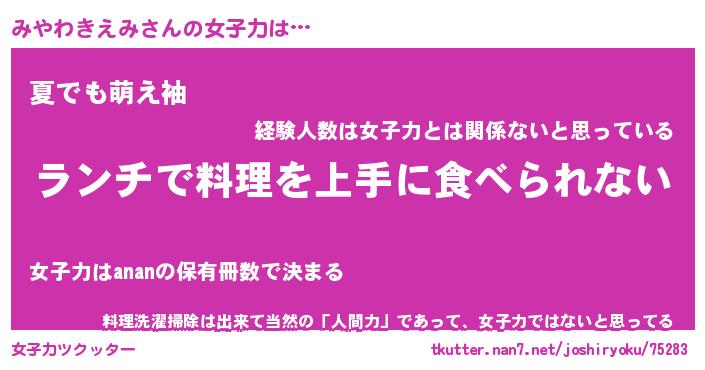 | ヘコむあだ名 | 『みやにー』『酢こんぶ』『みやっ子』 |