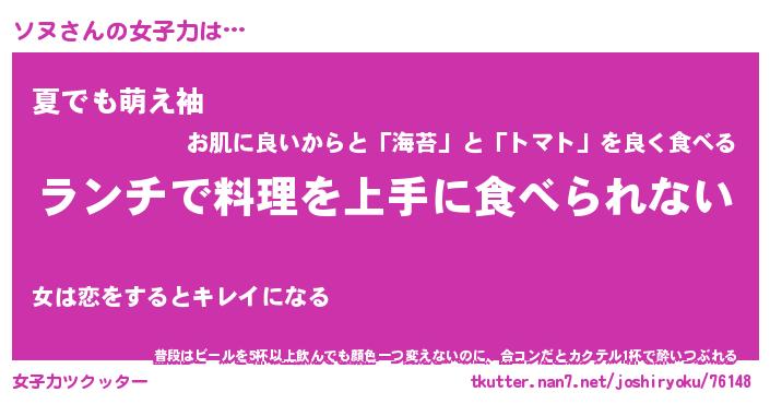 | ヘコむあだ名 | 『ソヌふぇ~』『なまこ酢』 |