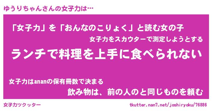 | ヘコむあだ名 | 『ゆうふぇ~』『豆乳』『ゆうぷりん』 |