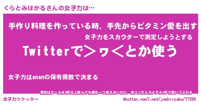 | 恥ずかしいあだ名 | 『プリティーくらとみはかる』『くらちん』 |