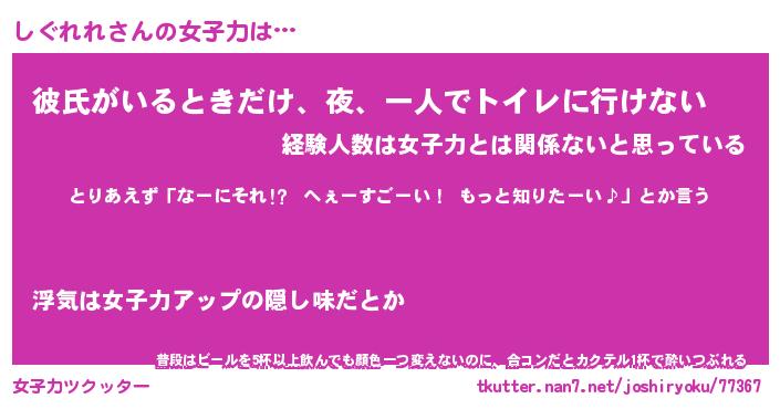 | ヘコむあだ名 | 『しぐにゅー』『豆乳』『しぐぷりん』 |