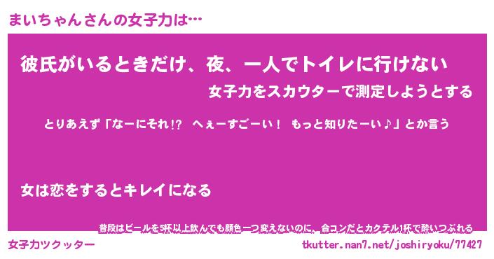 | ファンタジー風あだ名 | 『マイフェル』『エターナルマイチャンー』 |