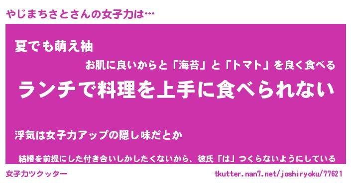 | ヘコむあだ名 | 『やじふぇ~』『酢こんぶ』 |