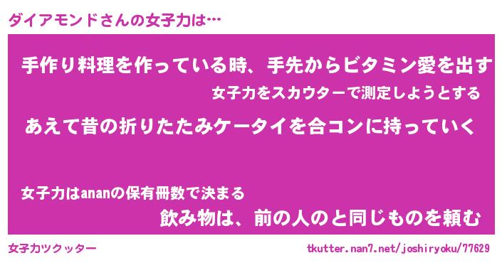 | 女子向けラノベタイトル風あだ名 | 『(仮)ダイアモンドのやんごとなき事情』 |
