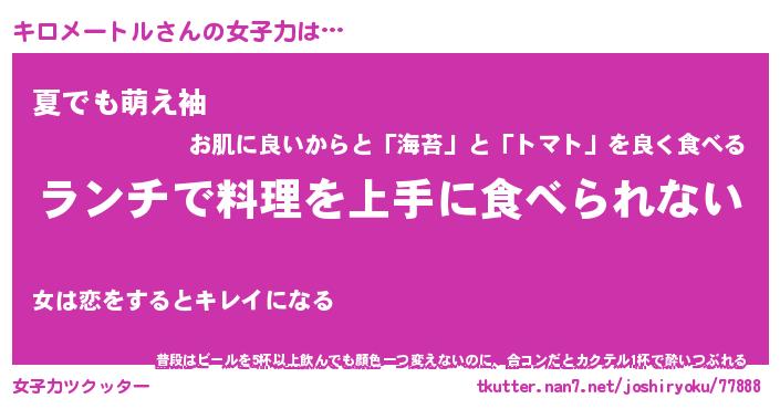 | ポケモン風あだ名 | 『キロチュウ』『キロメダネ』 |
