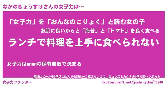 | ヘコむあだ名 | 『なかふぇ~』『酢こんぶ』 |